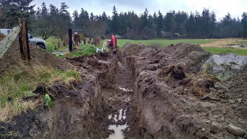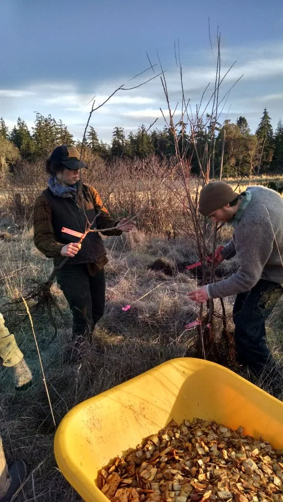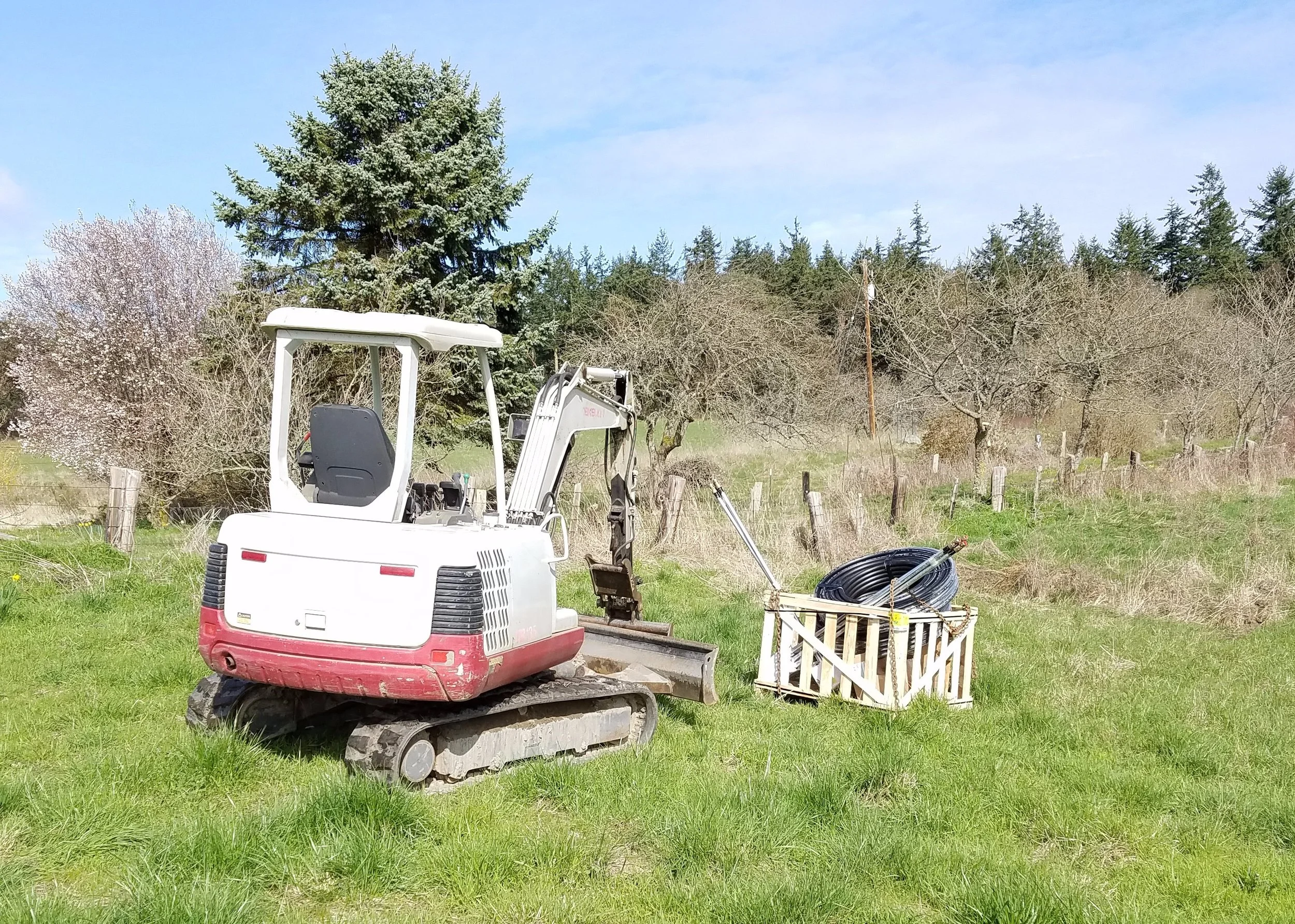 They're Heeeeeere! The trees, that is. So are Logan, Lacey and Shay, who've come up from Eugene to put 100(!) chestnut trees in the upper pasture, along with an assortment of apricot, peach and plum down by the house....